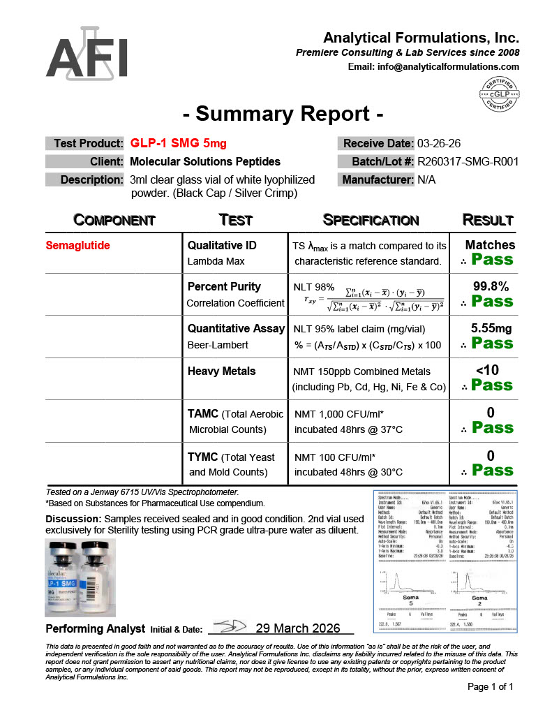 All products sold by Molecular Solutions Peptides (“MSPeptides”) are intended solely for laboratory, educational, and scientific research purposes.